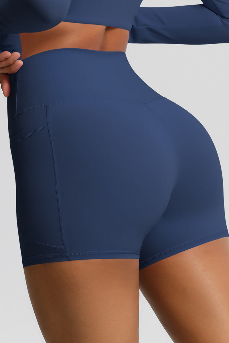 Træningsshorts med mid waist pasform og praktiske sidelommer til nøgler, kort og mobil. Det bløde strækbare materiale følger kroppens form og holder sig på plads under bevægelse – til både træning, yoga og hverdagsbrug.
