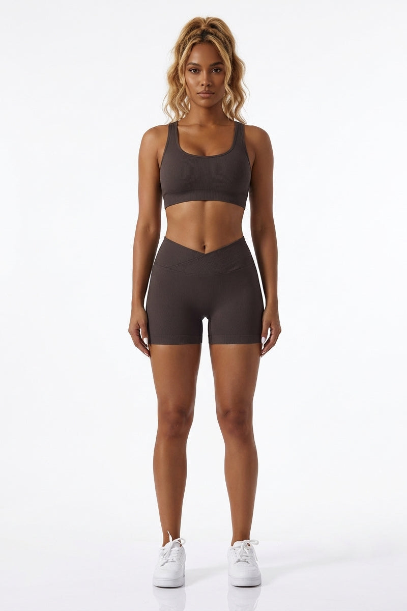 ZenCurve V Shaped Shorts – Mid Waist Brown