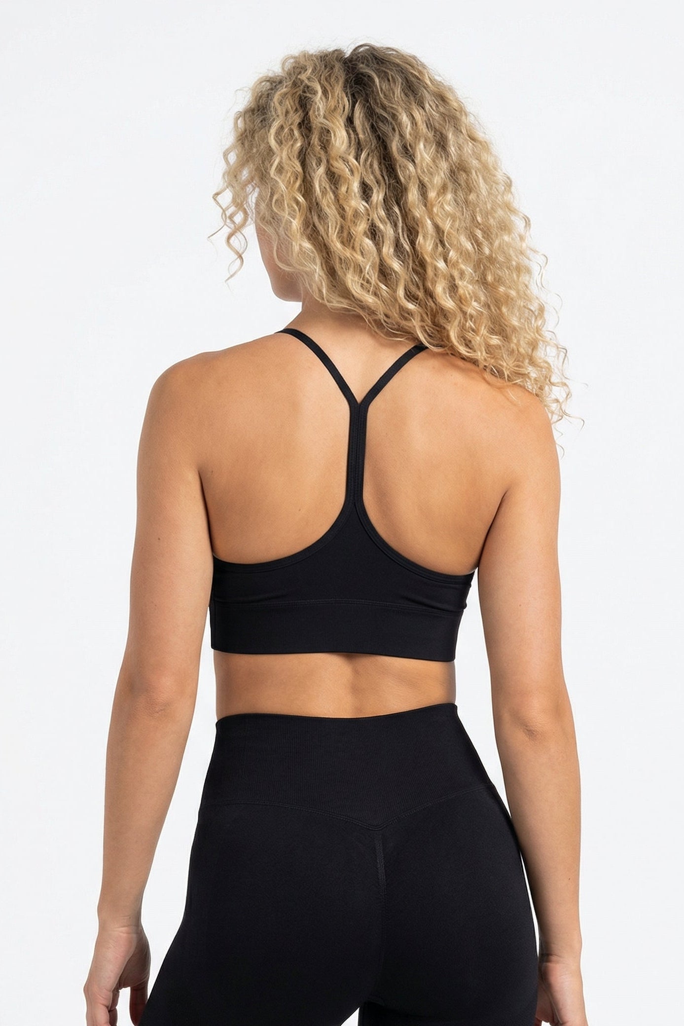 Medium støtte · Strappy krydsryg · Faste integrerede puder · Sømløs konstruktion · 80% Nylon / 20% Spandex
