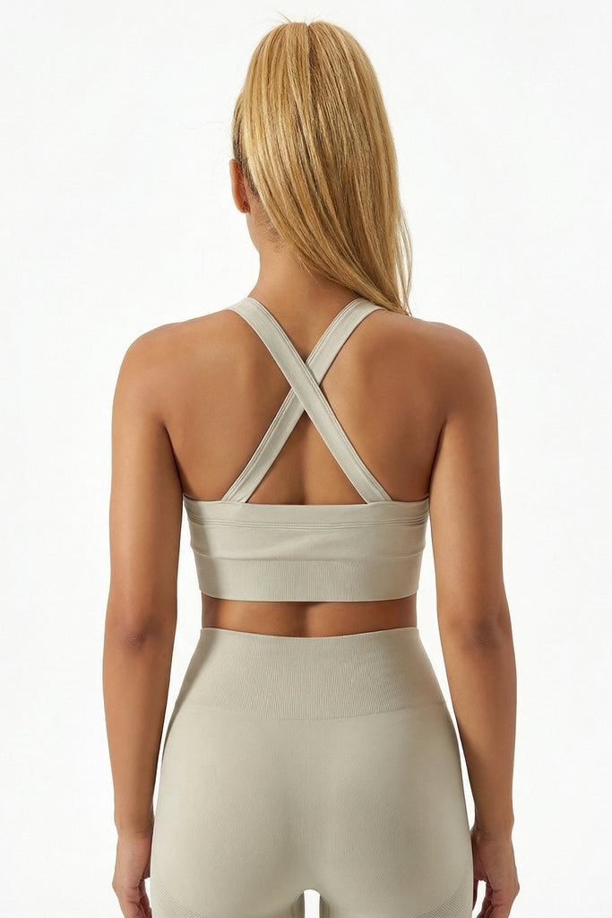 Det karakteristiske krydsryg-design fordeler vægten jævnt over skuldrene og giver stabil støtte uden at begrænse bevægelsen. De brede, flade stropper krydser elegant på ryggen og skaber et feminint og moderne udtryk. BH’en sidder sikkert og komfortabelt, både under aktivitet og i afslappede stunder.