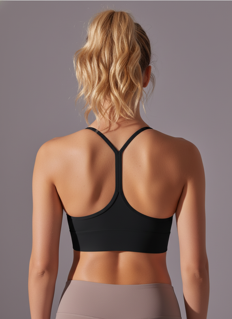 Kollektionens sports-bh’er giver maksimal støtte med kompressionspasform, der reducerer bevægelse under intensiv træning. Åndbare mesh-paneler øger ventilationen, mens krydsede stropper bagpå sikrer et elegant og stabilt fit. Designet giver balance mellem funktion, komfort og æstetik.