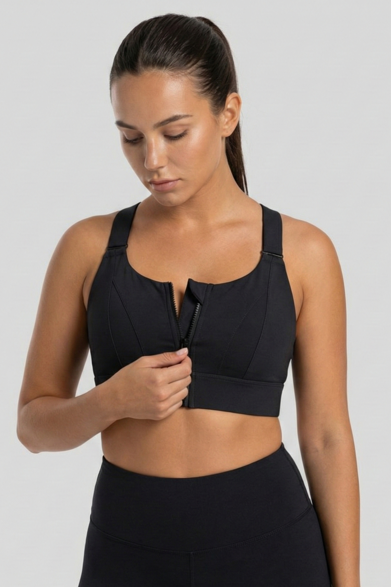 Denne sports BH med frontlynlås er lavet til dig der ønsker støtte, fleksibilitet og nem af og påtagning. Den fungerer godt til træning, yoga og hverdagsbrug hvor komfort og funktionalitet skal gå hånd i hånd. Det enkle design gør den let at kombinere med leggings, shorts eller en løs top.