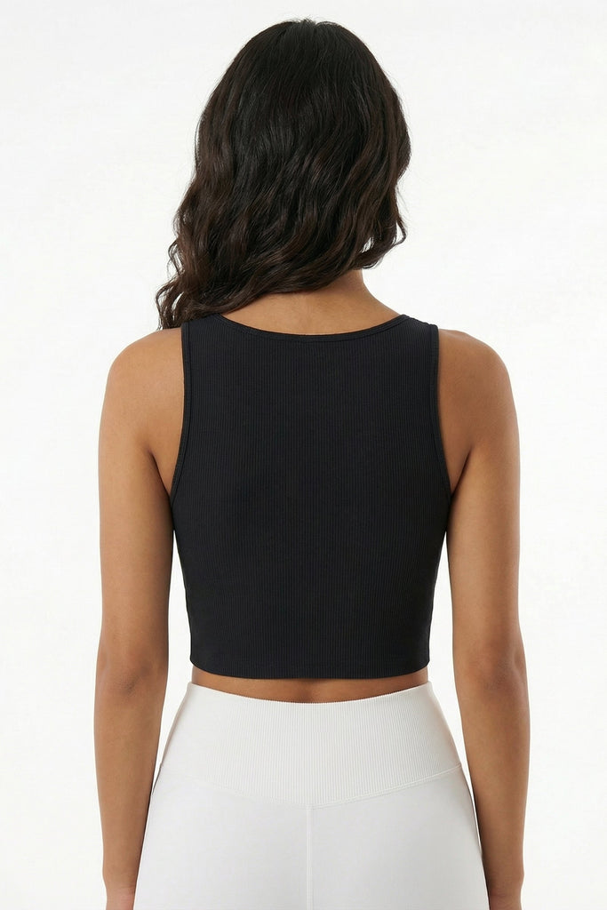 Toppen er udstyret med indbyggede, bløde puder, der giver let støtte og naturlig form. Det betyder, at du ikke behøver en ekstra sports-bh, og du kan bevæge dig frit – uanset om du dyrker yoga, pilates, styrketræning eller blot bruger toppen som en del af din casual garderobe. Den integrerede støtte er ideel til lav- og middelintensiv træning, samt til hverdagsbrug og lag-på-lag styling.