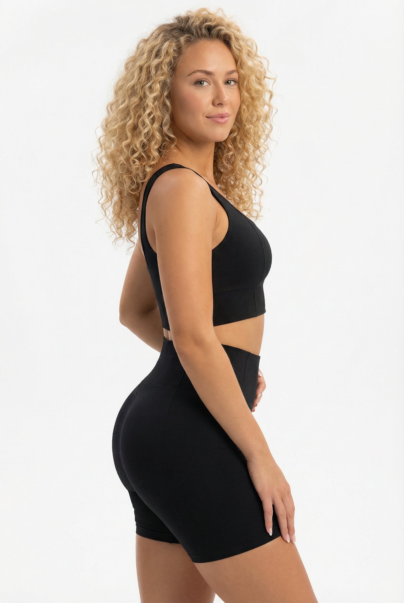 Pasform: Bred, elastisk underkant der sikrer stabilitet uden at stramme.