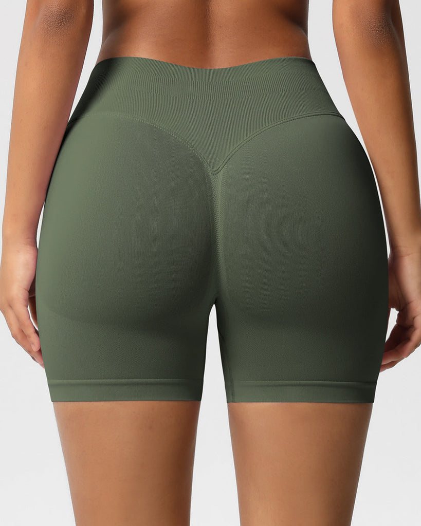 Den høje ribbede talje giver let kompression og støtte omkring mave og core og skaber en glat og formende pasform. Scrunch effekten bagpå løfter og fremhæver balderne på en naturlig måde. Det sømløse materiale er blødt og fleksibelt og shortsene bliver siddende uden at rulle ned eller op under træning.