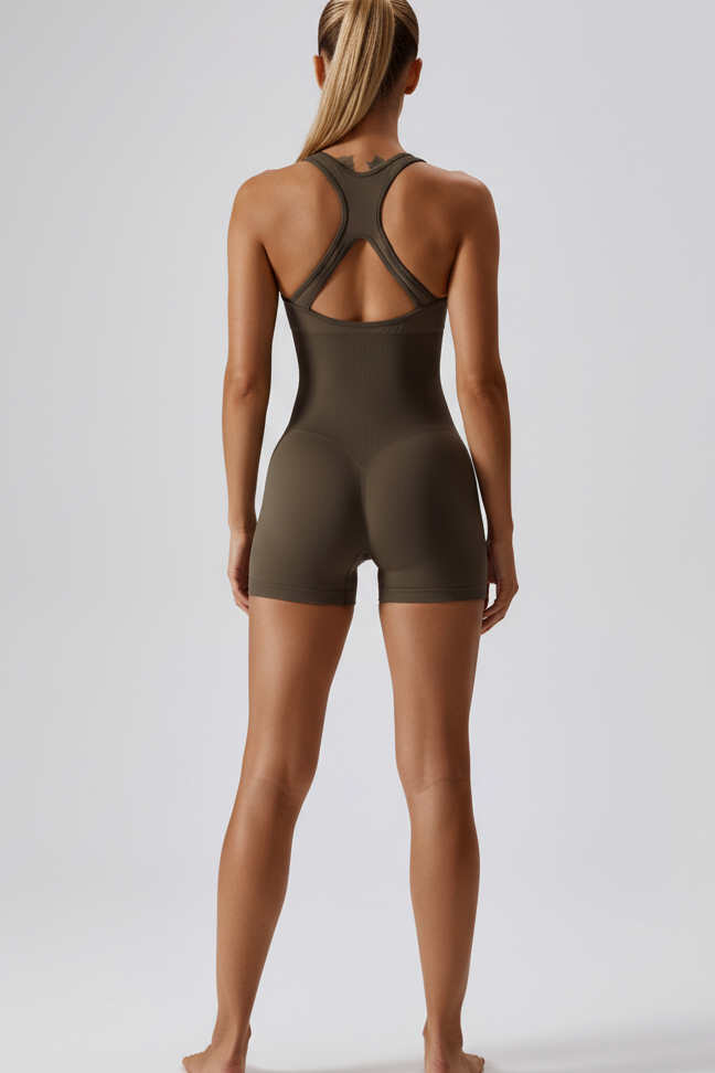 Sømløs, tætsiddende heldragt med kort benlængde — designet til maksimal komfort og bevægelsesfrihed.