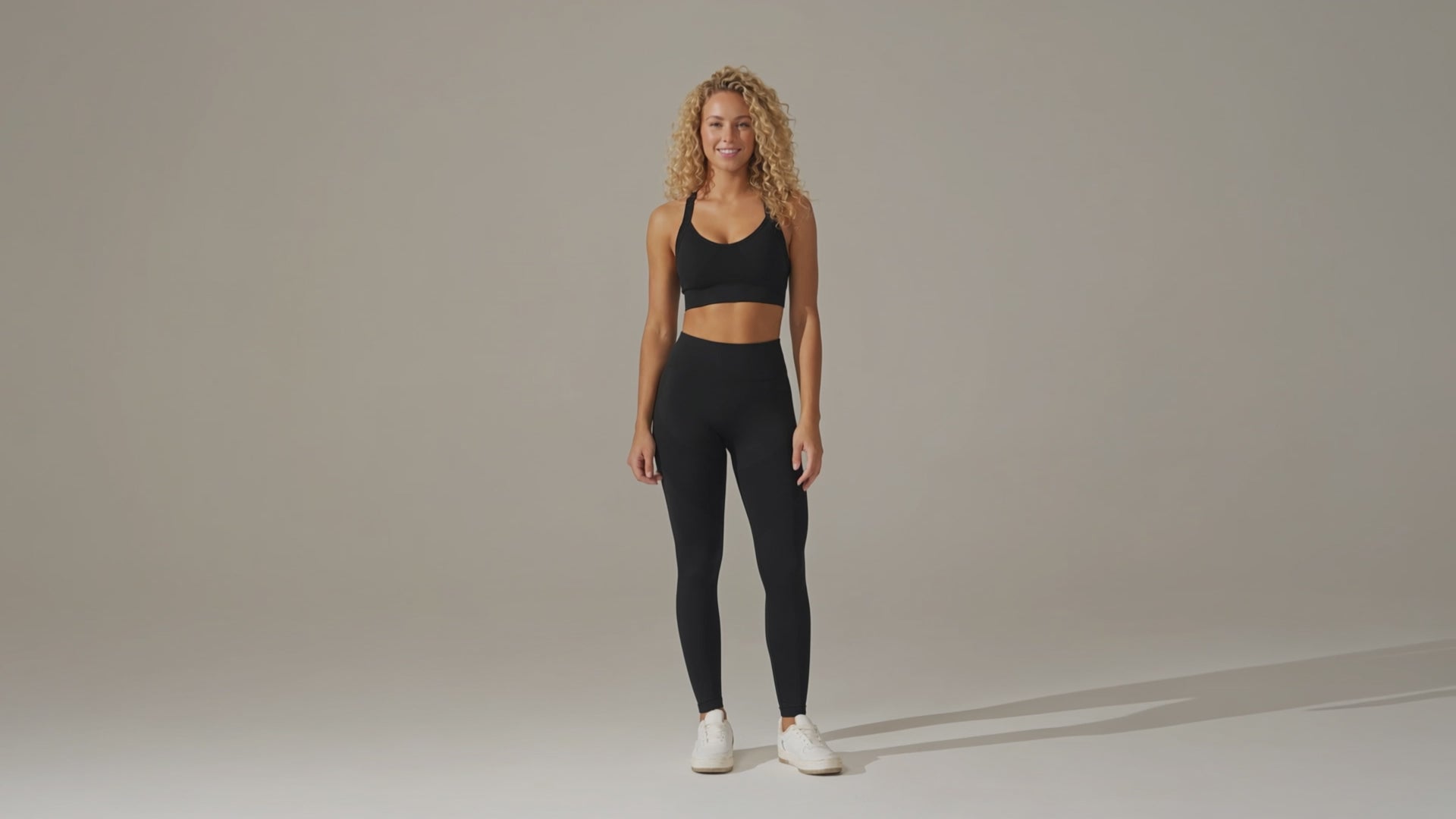 Crossback design · 100% sømløs · Medium støtte · Bred elastisk underkant · Udtagelige skåle · Åndbart og hurtigtørrende