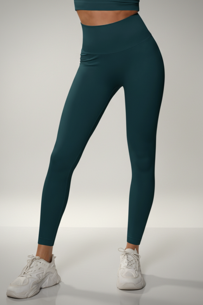 Høj talje giver ekstra støtte til mave og core, mens stretch og kompression sikrer både frihed og et fast fit.