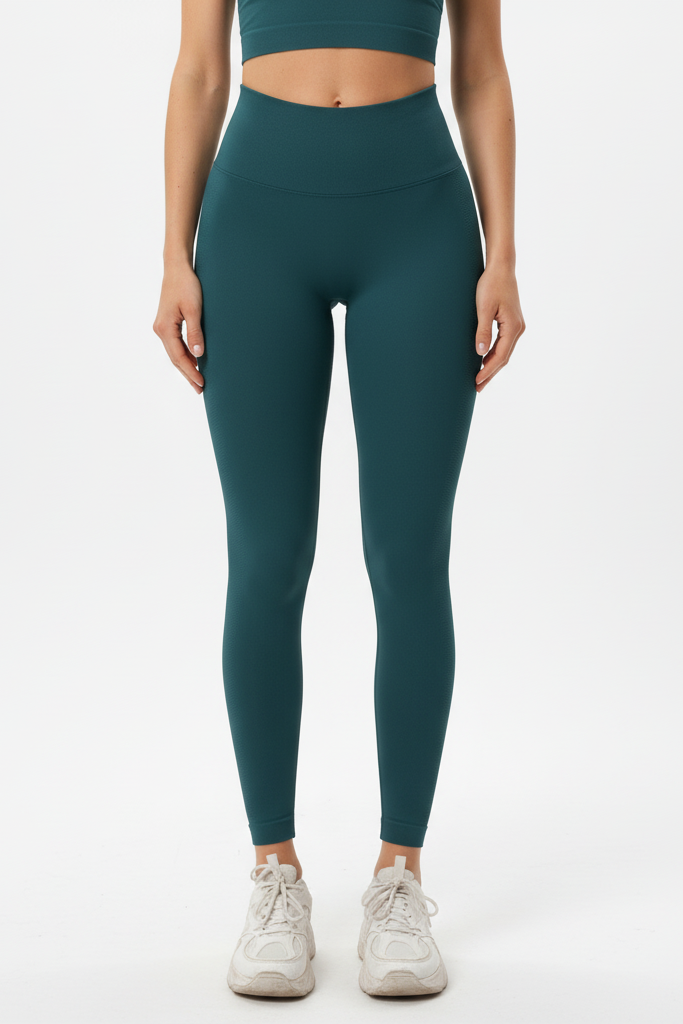 Den brede højtaljede linning giver let kompression omkring mave og core og bliver siddende under bevægelse. Det figursyede snit skaber en glat markeret silhuet under både tætsiddende og løstsiddende toppe.