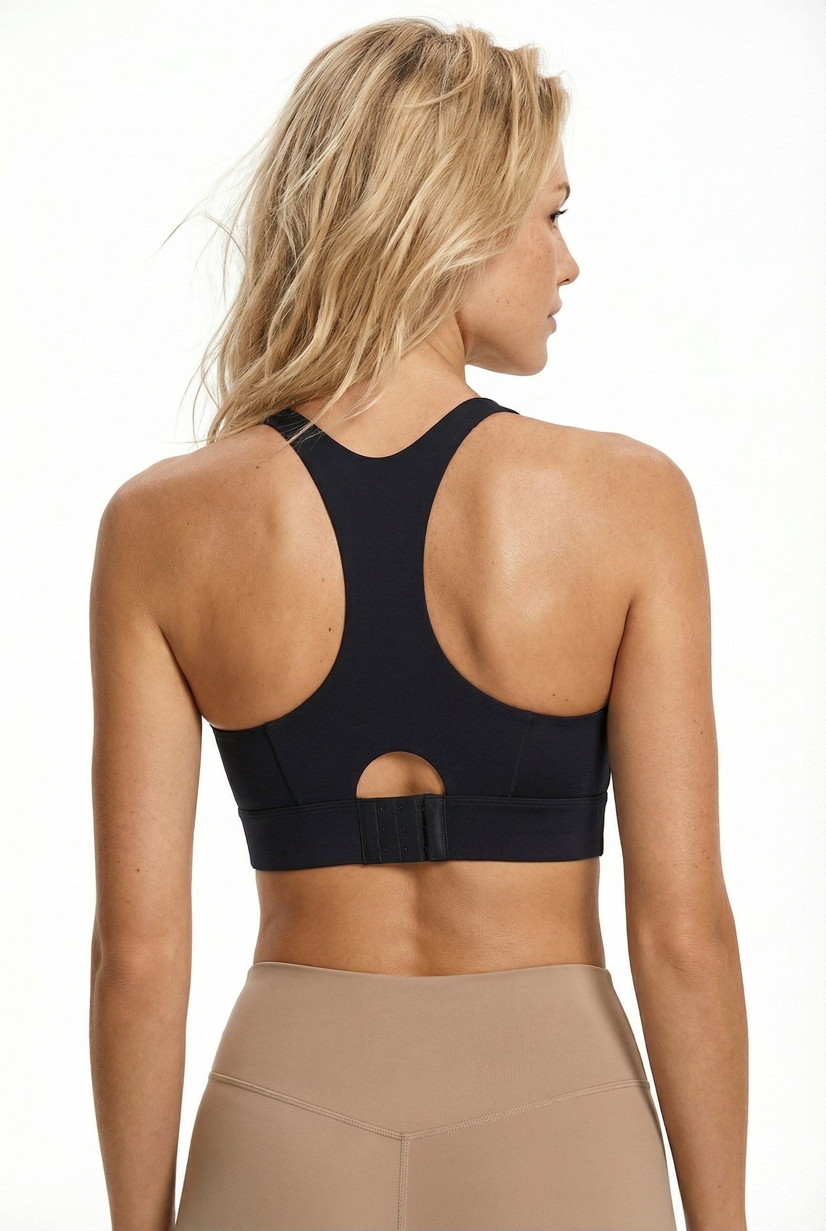 High Support & Faste Puder: De integrerede, faste skåle sikrer stabilitet og form uden at puderne flytter sig. Sammen med racerback-designet minimerer det bevægelse (bounce) under løb og hop.