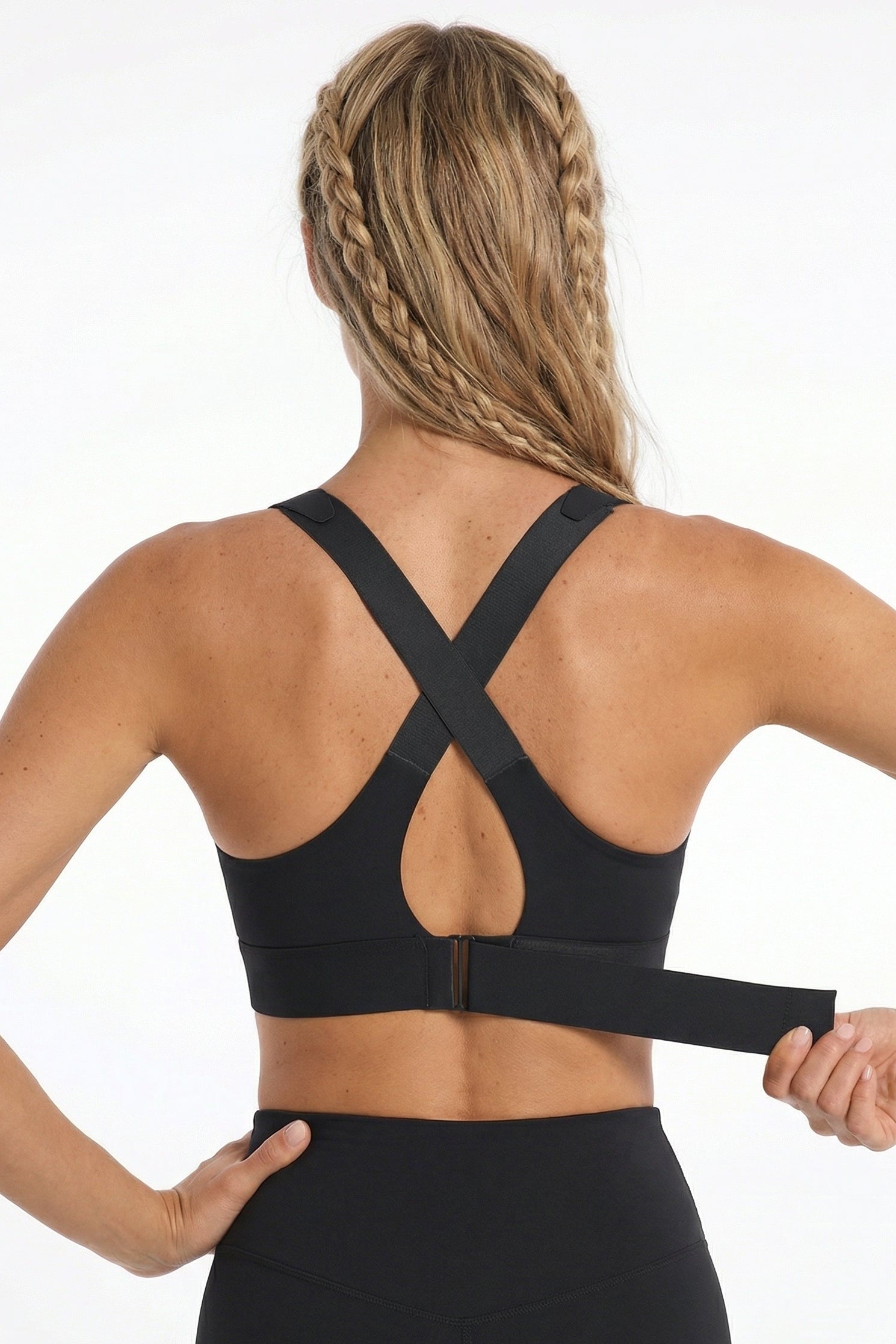 High Support Sports BH med Lynlås (Justerbar) – Black