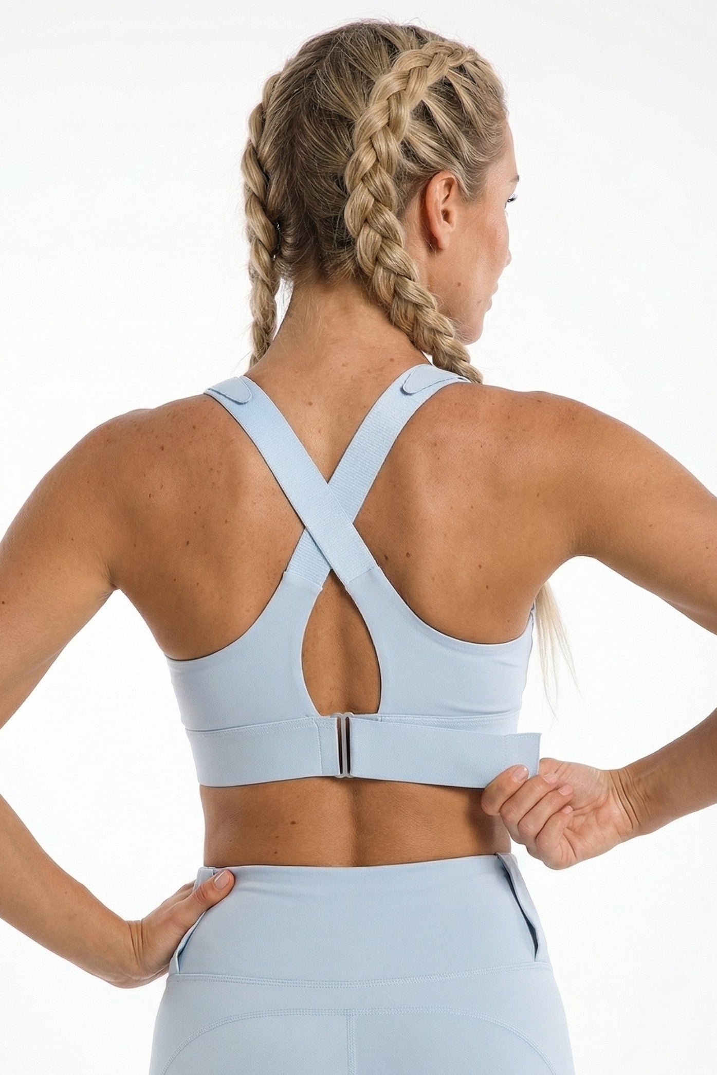 High Support Sports BH med Lynlås (Justerbar) – SkyBlue