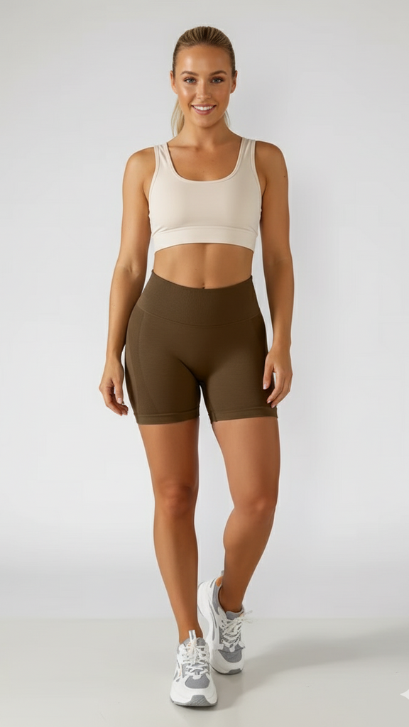 - High waisted gym shorts – høj talje giver støtte, shaping og en flatterende silhuet.