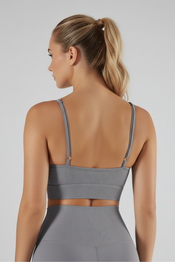 SkyFlex Active Sports-BH er designet til dig, der ønsker let støtte, fri bevægelighed og et stilrent, minimalistisk udtryk. Den bløde, ribbede kvalitet smyger sig behageligt om kroppen uden at stramme, og den fleksible pasform gør bh’en ideel til både yoga, lavintensiv træning og hverdagsbrug.