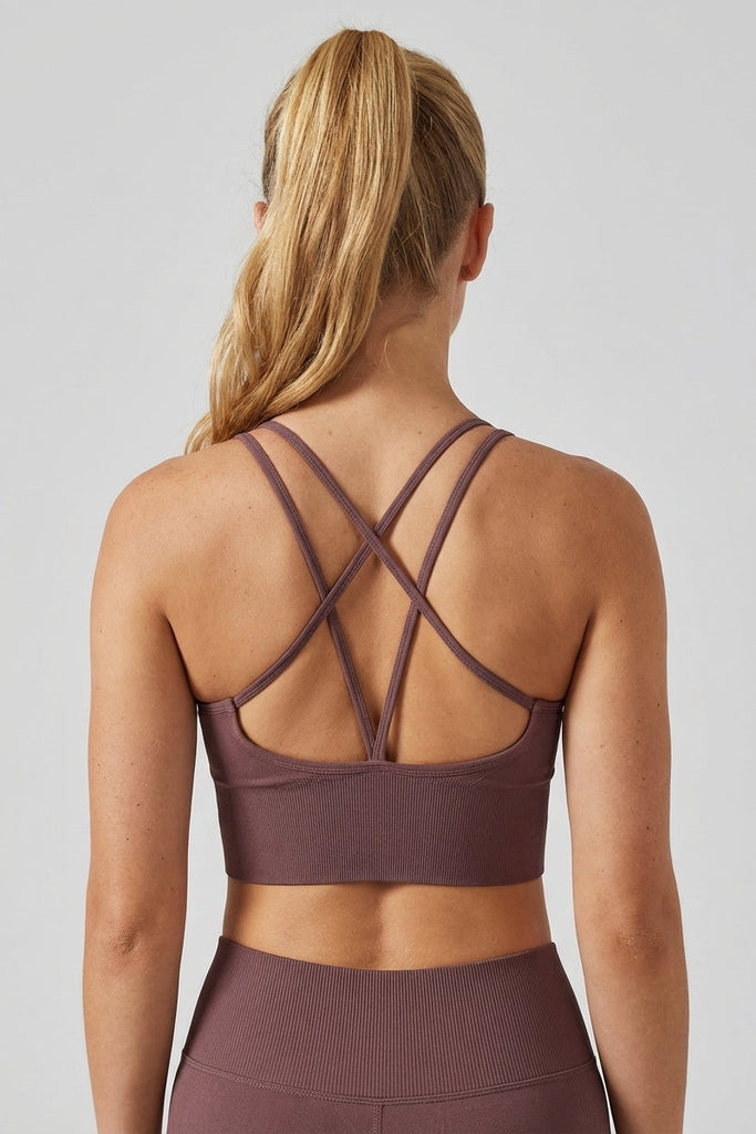 Det elegante krydsryg-design med dobbelte stropper giver både visuel lethed og stabilitet. Stropperne fordeler vægten jævnt og sikrer et sikkert fit uden at begrænse bevægelsen. Du får fuld frihed i skuldre og overkrop – perfekt til yoga, styrketræning og HIIT.
