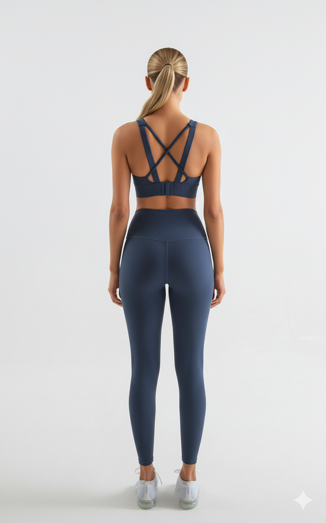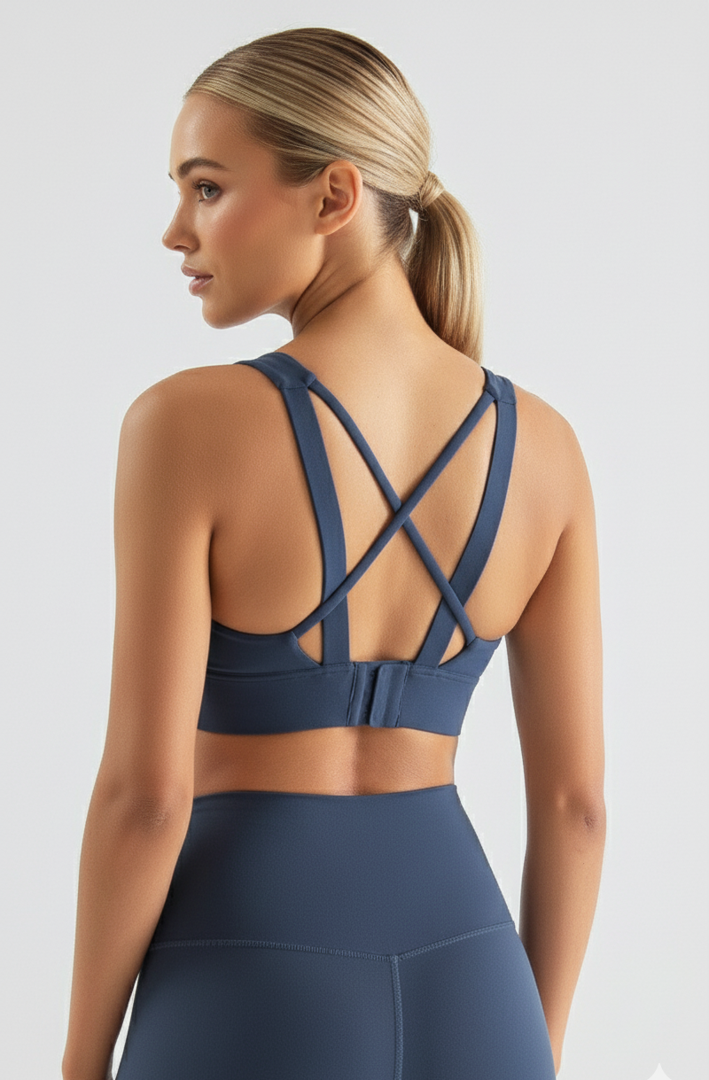 Den moderne crossback-konstruktion sikrer optimal frihed til bevægelse og en flatterende rygprofil. De brede, krydsede stropper fordeler vægten jævnt og reducerer belastningen på skuldre og nakke, så du får stabil komfort hele træningen igennem – uden at føle dig begrænset.