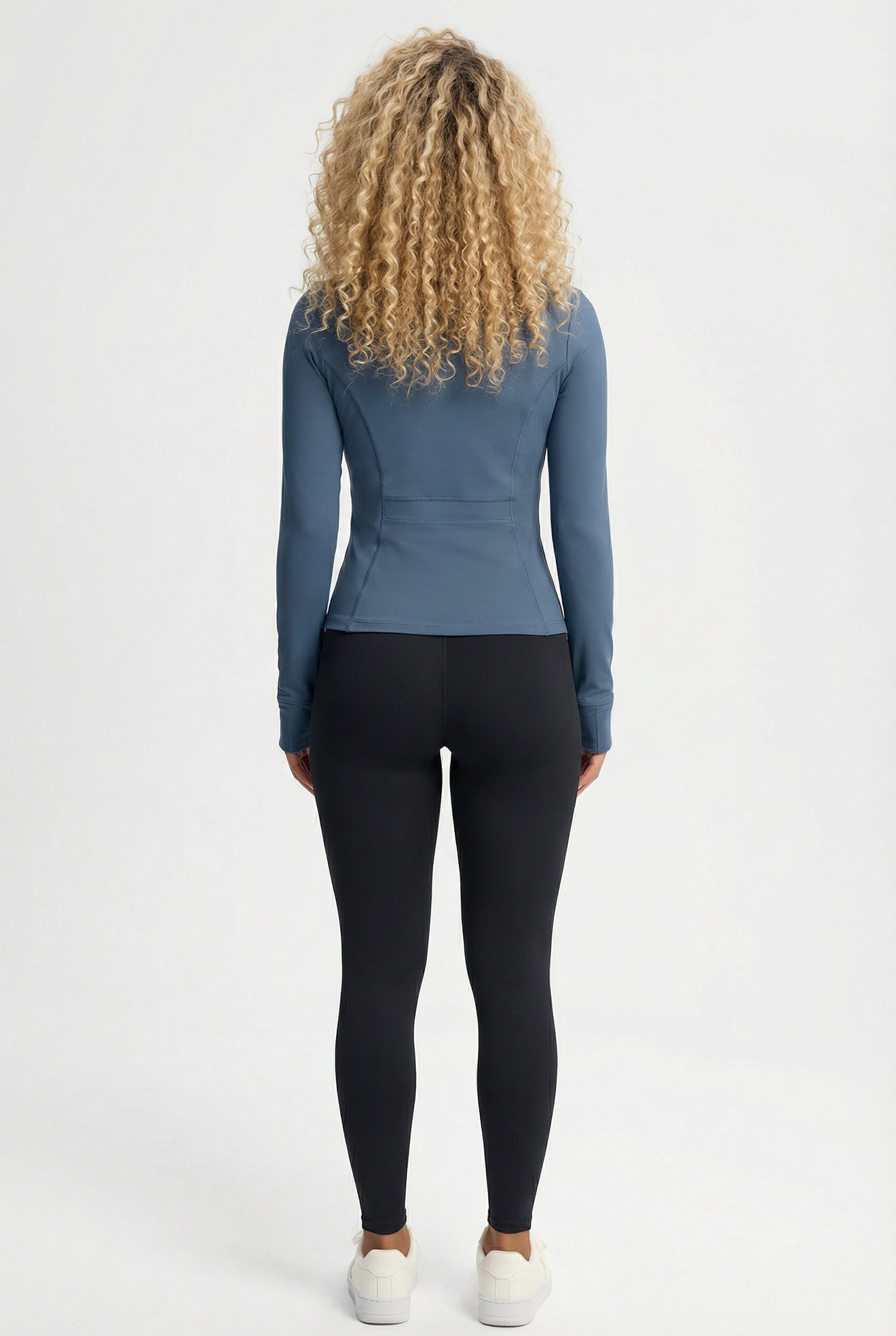 Figursyet sportsjakke der smyger sig om kroppen og skaber en feminin silhuet uden at begrænse bevægelsen. Gennemgående lynlås og høj krave giver nem an- og aftagning – til opvarmning, udendørs løb og lag-på-lag styling i overgangsvejret.